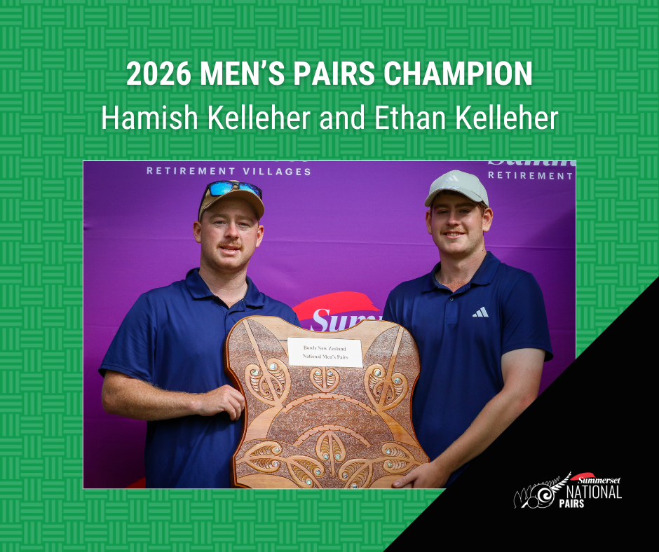 The final of the men’s pairs was another nail biter as brothers Ethan and Hamish Kelleher (Halswell) took on Gary Lawson (Elmwood Park) and Tony Grantham (Mt Albert) who were chasing a third pairs title in four years.