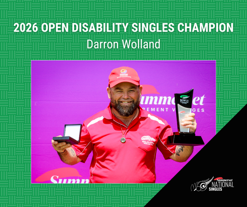 In the day’s other final Darron Wolland (Balcutha) was clinical to pick up another national title in the Open Disability Singles, proving too good for Jono Radka (Papanui). Wolland took the lead early and never relinquished it, winning 21-2.